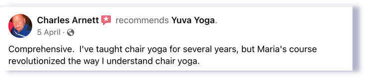 If you are new to teaching chair yoga, or if, like me, you have been teaching awhile, this handbook will become a much used resource!"