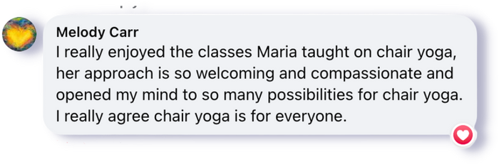 "Everything you need to know about teaching chair yoga can be found in Maria Jones' The Chair Yoga Handbook!