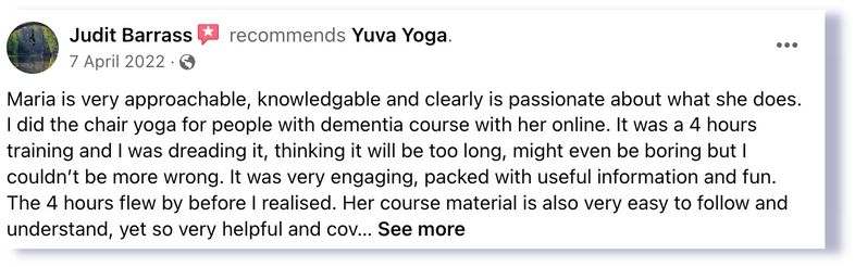 Train to deliver Chair Based Yoga classes to people with Dementia and Mild Cognitive Impairments.